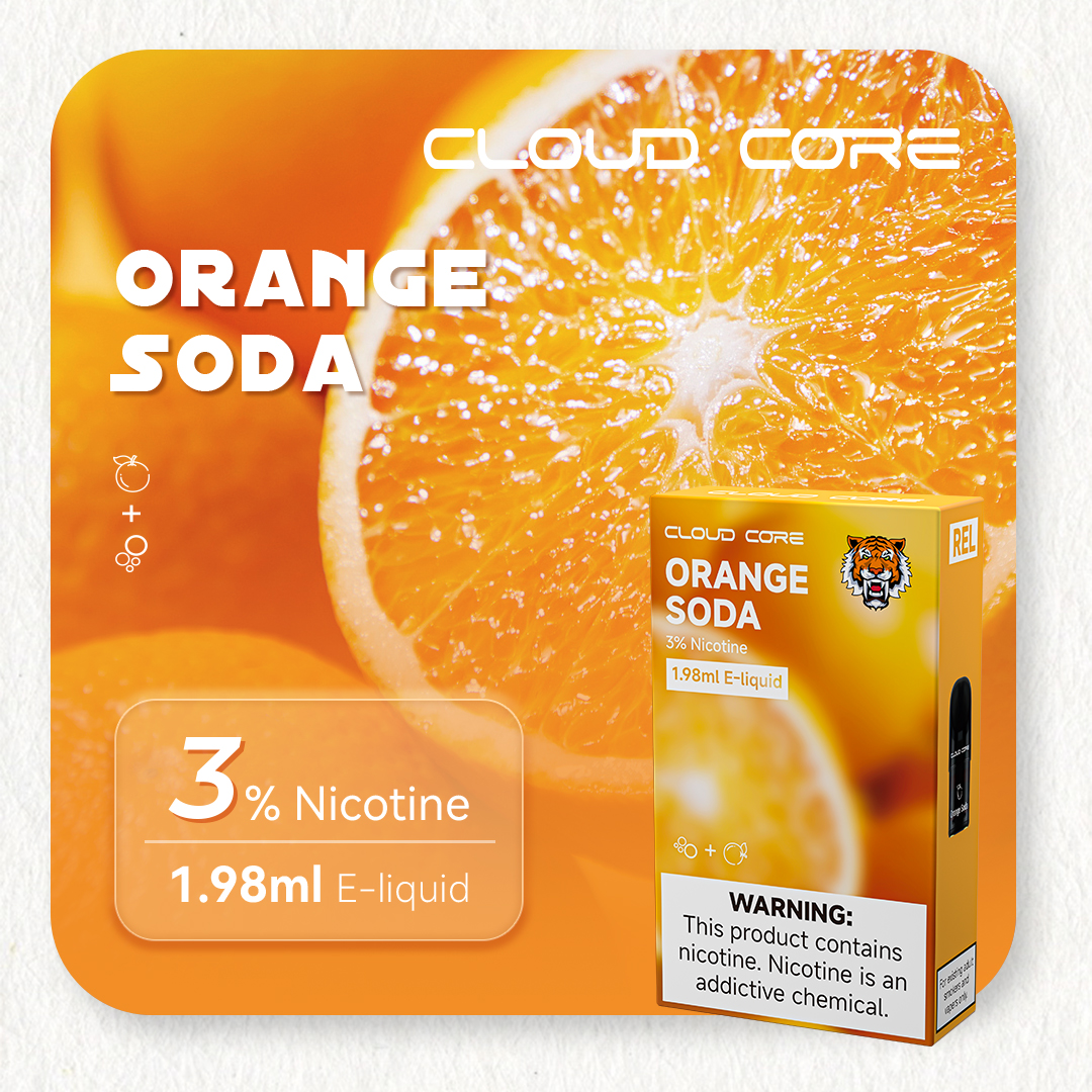 POD with Orange Soda flavor. 3% Nicotine, 1.98ml E-liquid