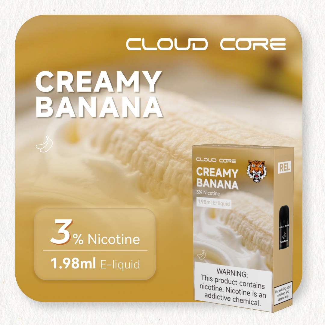 POD with Creamy Banana flavor. 3% Nicotine, 1.98ml E-liquid